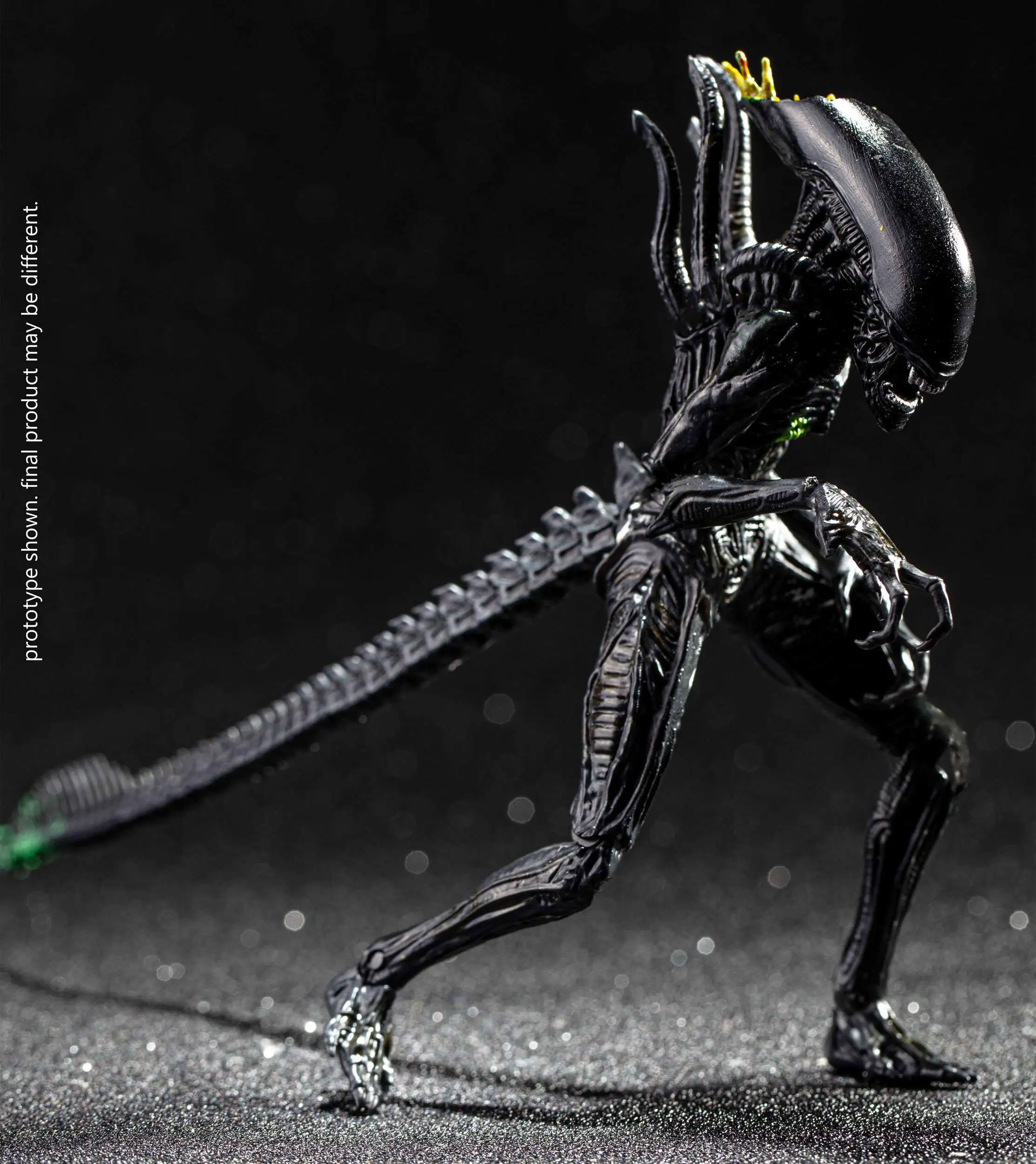 In an alternate 2004, industrialist Charles Bishop Weyland sends a group of explorers to investigate a mysterious Antarctic pyramid, but discover they’ve entered a Yautja hunting ground. Now caught between a trio of Hunters and a host of xenomorphs, the team must find a way to escape…or risk becoming prey or trophy! The Blowout Alien Warrior proves that the only safe Xenomorph is a dead Xenomorph. This battle-damaged Warrior features an exploded carapace, projectile damage to its torso, and a partially dismembered tail. This 1:18 scale figure stands approximately 4″ tall and also features a pegged stand for posing.