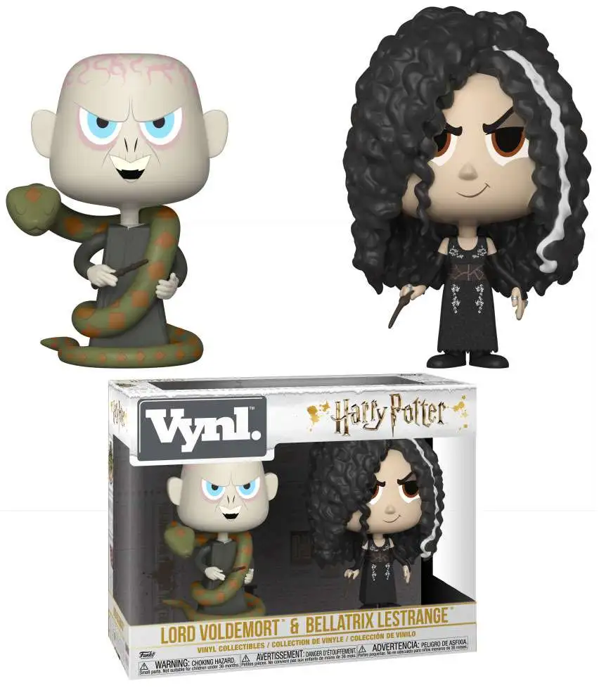 Celebrate Dark Arts month with Lord Voldemort and his most loyal Death Eater Bellatrix Lestrange, available as a Vynl. duo.