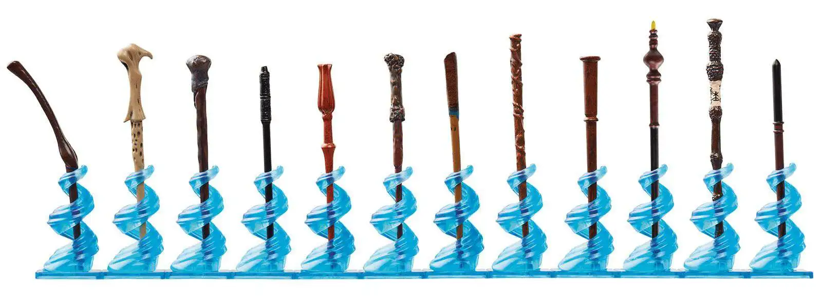 Straight from the Harry Potter movies come this assortment of diecast character wands. Each one comes with base in a blind box packaging.