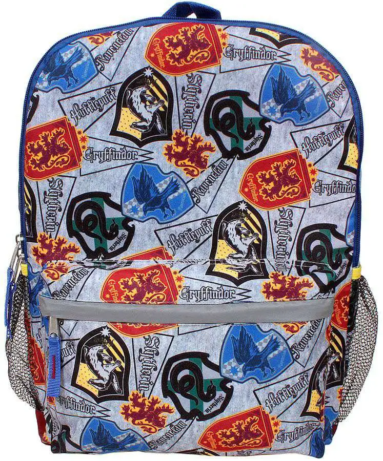 Harry Potter House of Hogwarts 16 x 12 x 5-inches Backpack. Features allover print of house crests Gryffindor, Hufflepuff, Ravenclaw and Slytherin.