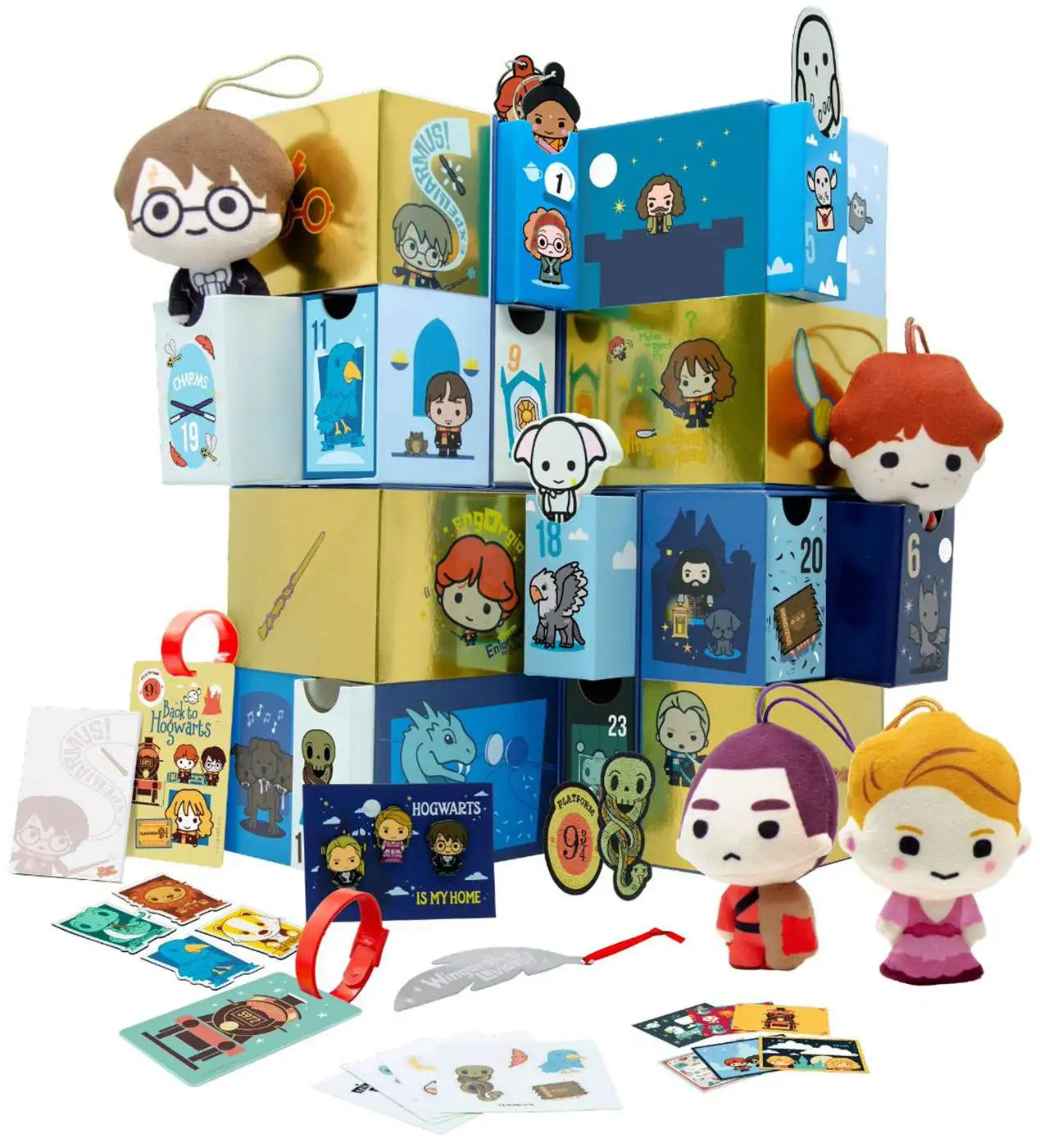 24 SURPISES INSIDE. Witches, wizards and Muggles of all ages can unlock the magic every day of the holiday season. Includes 24 collection pieces including plush, gift tags, keyrings, notepad and reusable bag.