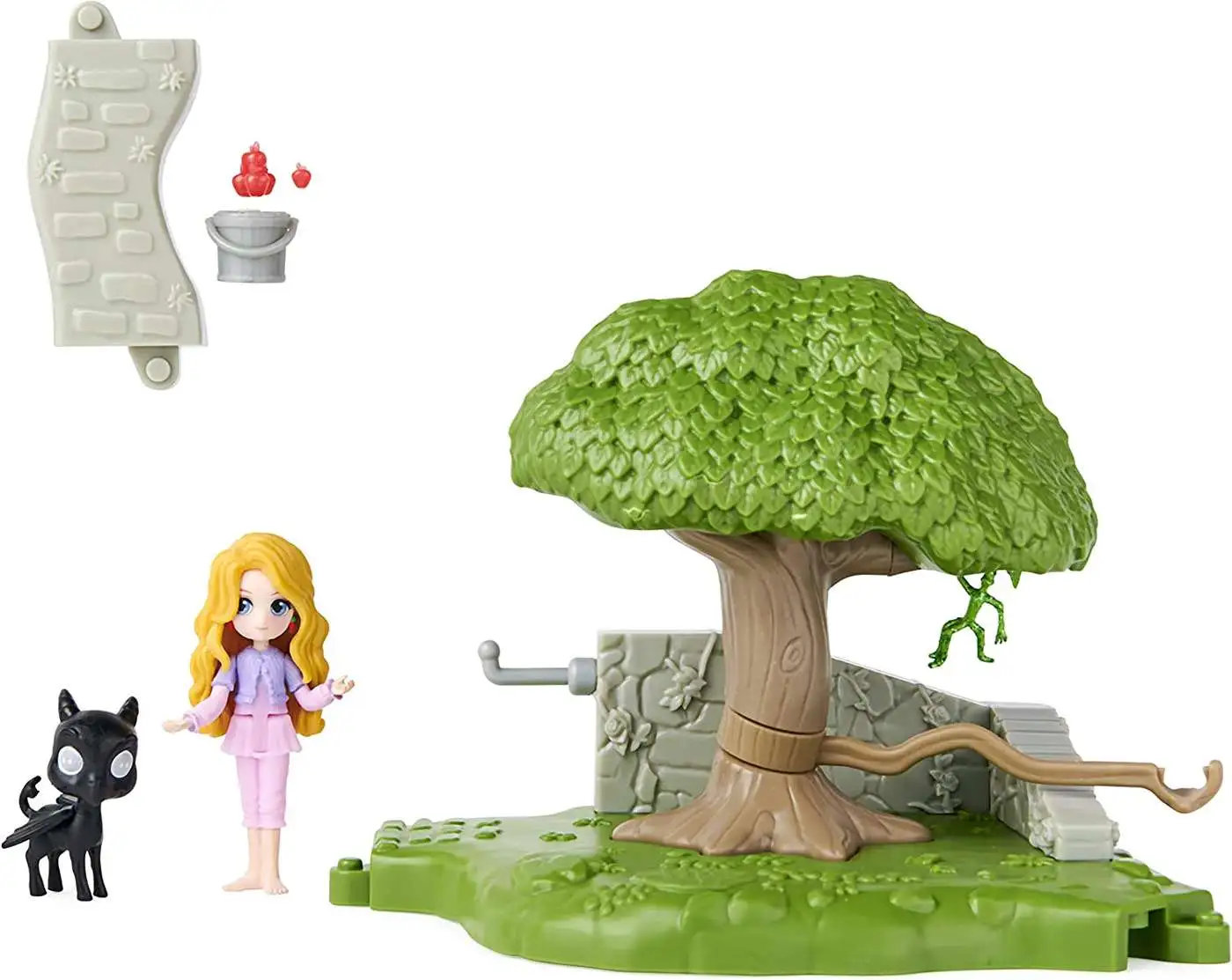 Imagine caring for creatures from the Wizarding World with Luna Lovegood and the Magical Minis Care of Magical Creatures Playset! Featuring an exclusive 3-inch Luna Lovegood doll and three themed accessories including a flying baby Thestral, young witches, wizards and Muggles can recreate their favorite Harry Potter scenes with this fun playset. Attach the baby Thestral to the tree trunk and fly it all the way around the tree! Then grab the hanging bucket from its hook and feed the Thestral the included apples Luna can even hold an apple in her hand. Next, find creatures hiding in the tree. Move Luna over the activation spot and the Bowtruckle magically pops out of the tree! The Magical Minis Care of Magical Creatures Playset is the perfect way to inspire your imagination through fun and exciting pretend play. Connect the playset to the outside of the Magical Minis Hogwarts Castle (sold separately) using the included path connector and expand your Magical Minis small dolls world with the Potions and Charms Classroom Playsets (doll playsets each sold separately). Collect and connect all of the Magical Minis dolls, Friendship Sets and playsets to build out your own Wizarding World (each sold separately)! Magical Minis Harry Potter toys for girls and boys are the perfect gifts for kids and Harry Potter fans who enjoy collectibles, small toys, and dolls & accessories. Experience the magic of Harry Potter with the Wizarding World Magical Minis Care of Magical Creatures Playset!