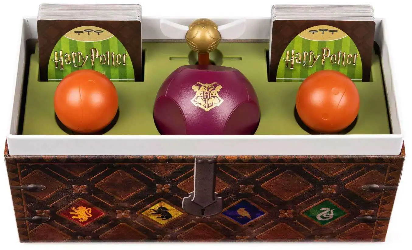 Includes: 1 Quidditch Chest, 100 Cards, 1 Quaffle, 2 Bludgers, 1 Golden Snitch, 1 Instruction Sheet