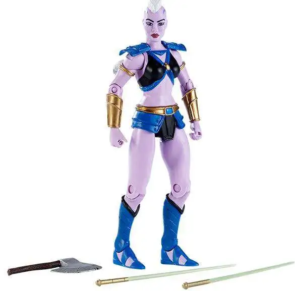 A Silaxian with superior sword skills, this brave bounty hunter gets serious props as a formidable foe for She-Ra. Our tenacious tracker arrives with a tomahawk axe, twin laser swords, and a majestic mohawk that suits her fierce warrior style to a “T”.
