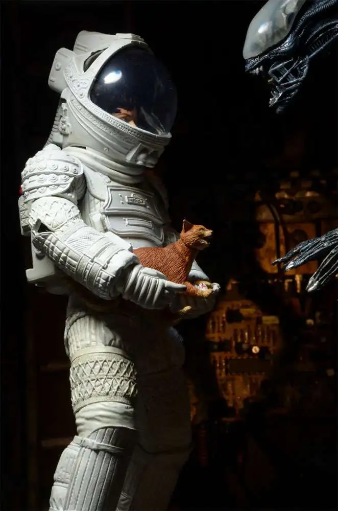 Ripley in Nostromo Spaceuit comes with removable helmet, harpoon gun with two different attachments, and a frightened version of Jonesy the cat.