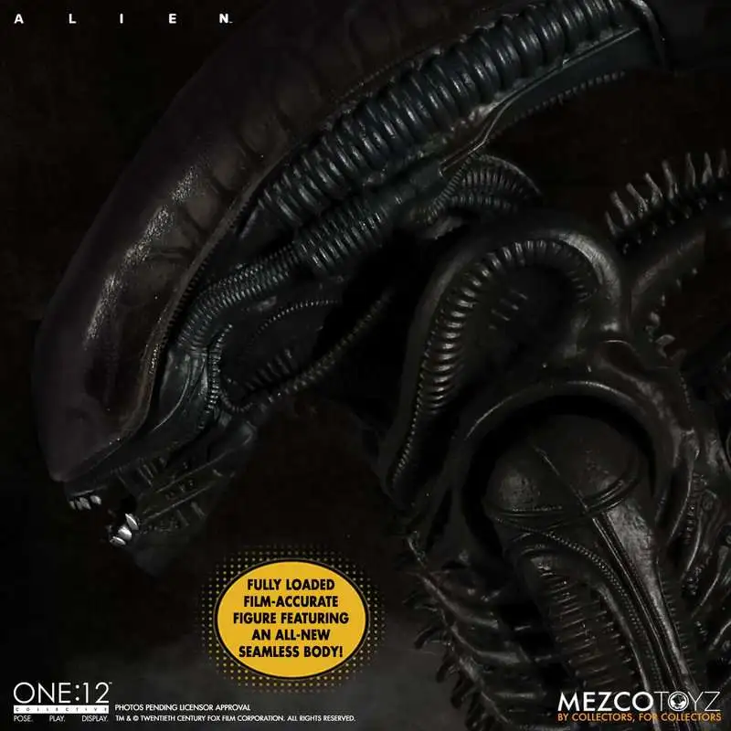 The One:12 Collective Alien features an all-new seamless body designed with an internal skeleton armature that is durable yet highly posable. The hostile xenomorph is equipped with a hinged pharyngeal jaw and interchangeable inner mouths, as well as an interchangeable chest plate pierced by the ASSO-400 Harpoon Grappling Gun, as seen in the final scene of the movie.