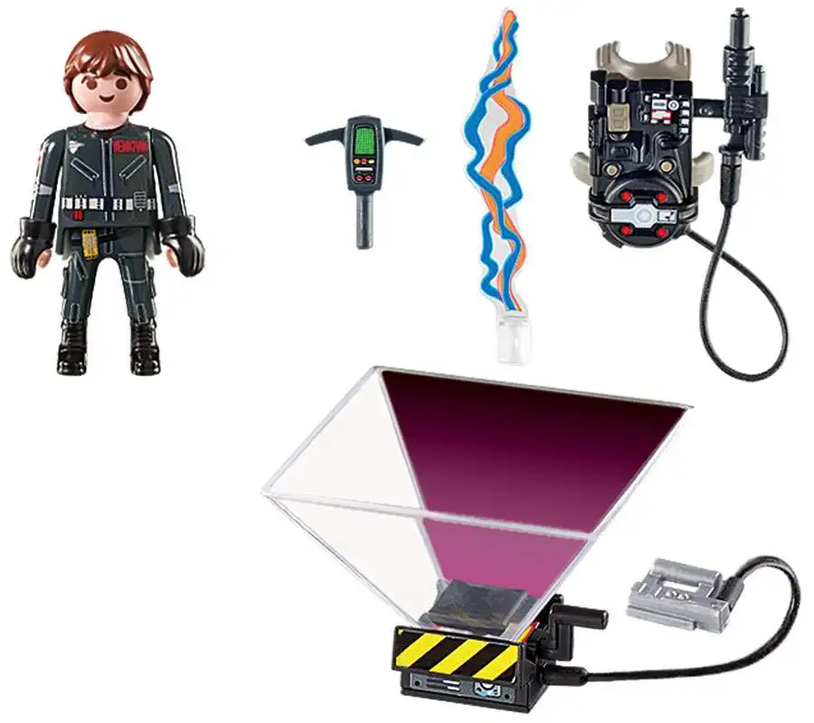 Peter Venkman With cool hologram effects (app download necessary). The clear ghost-trap cone acts as a projector when paired with a smartphone or tablet. Activate the app to capture ghosts inside the ghost cone!
