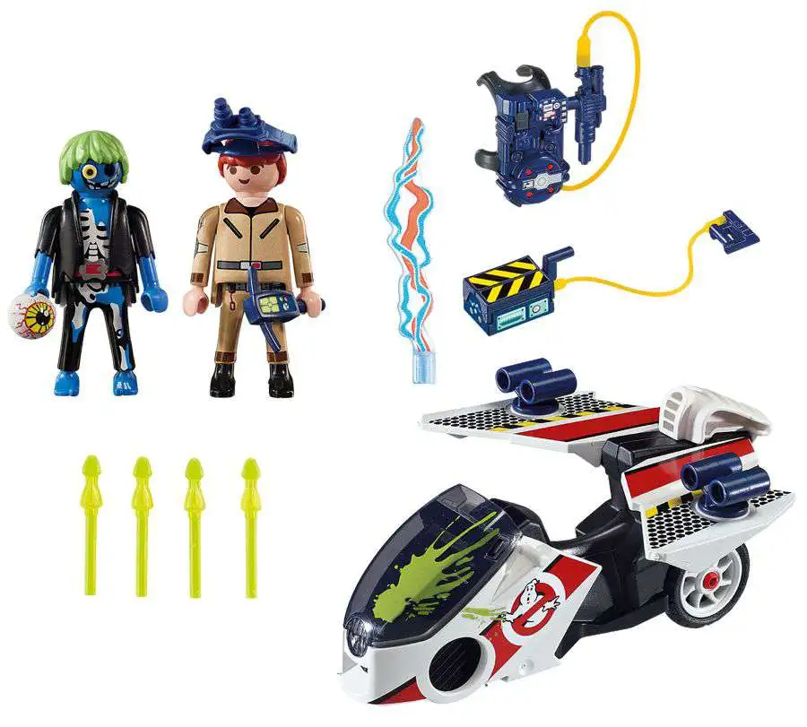 – The bike seats one Ghostbusters figure and accessories like the proton pack, the proton wand, the PKE meter and the ghost trap.