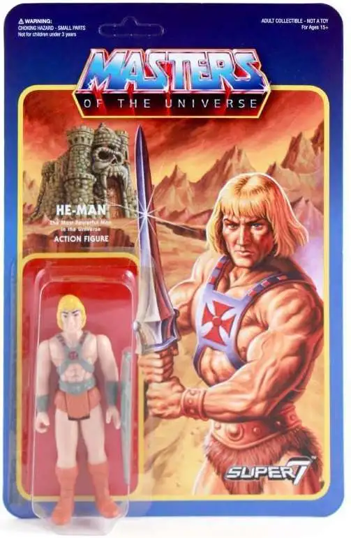 The iconic Masters of the Universe toys re-imagined as 3.75″ action figures from the golden age! He-Man comes armed with his Power Sword with original card art by Jason Edmiston.